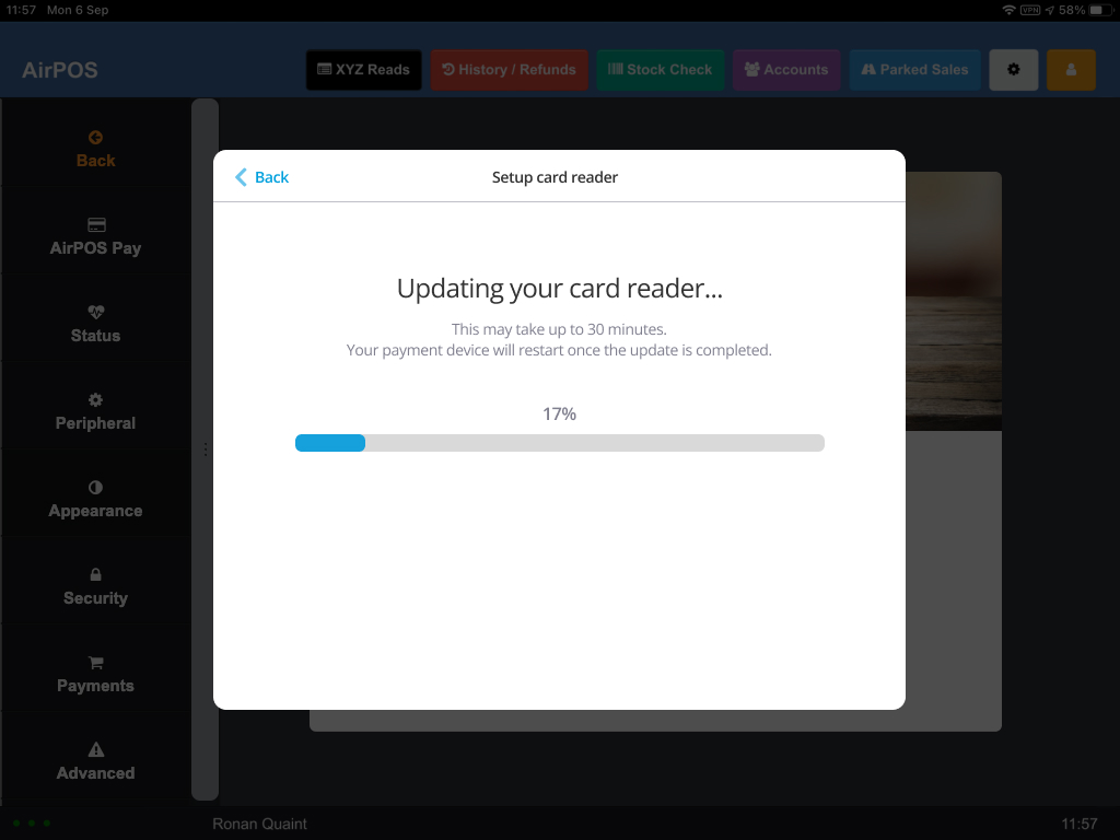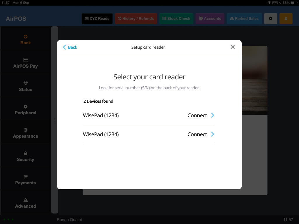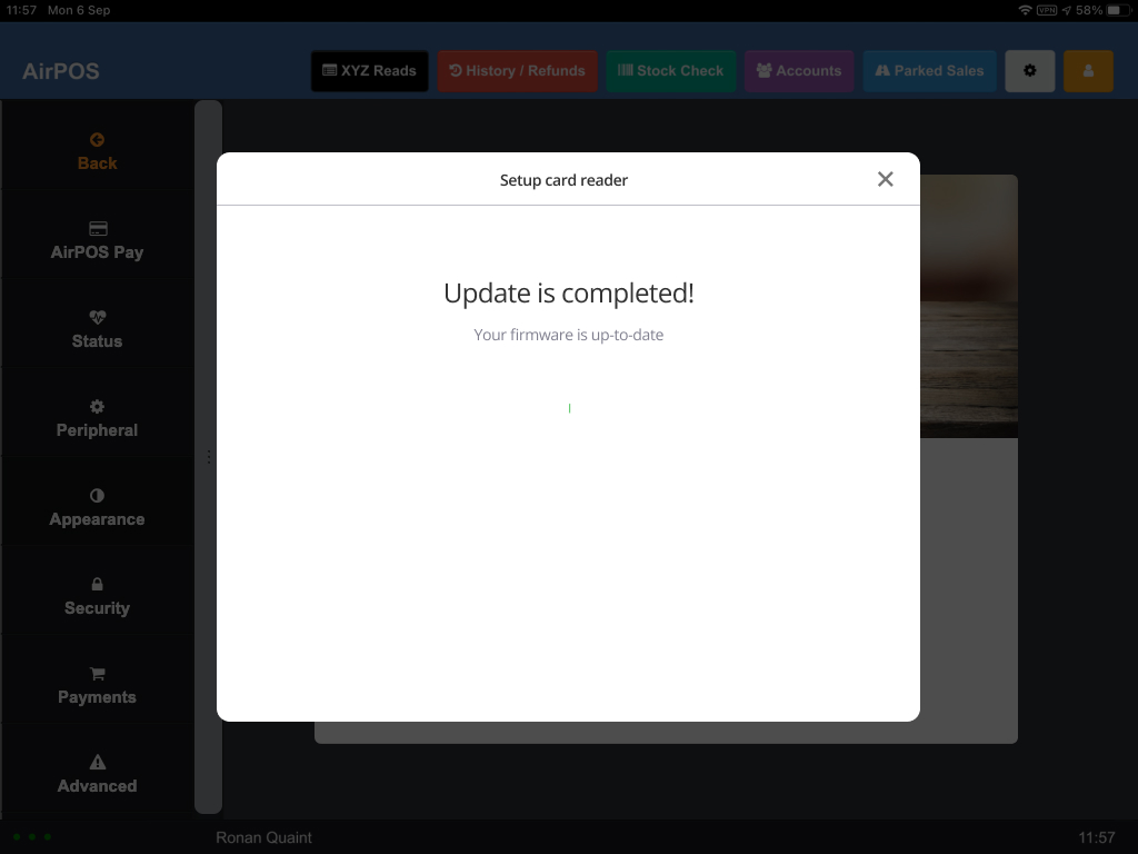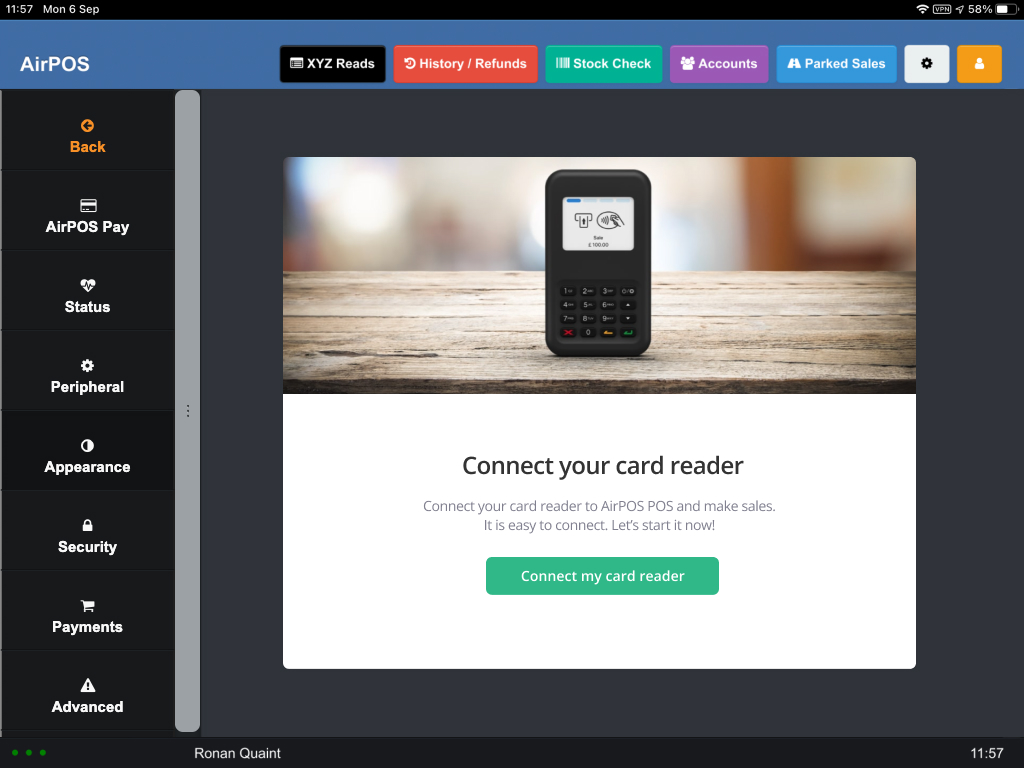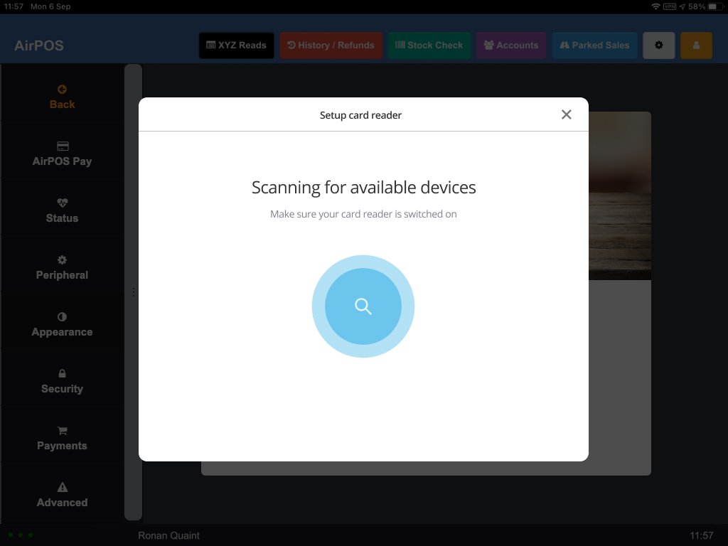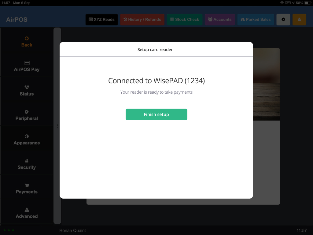 This project involved me building the UI flow that instructs users how to successfully set up their new AirPOS Pay card reader to their POS app and display any errors they may encounter.
