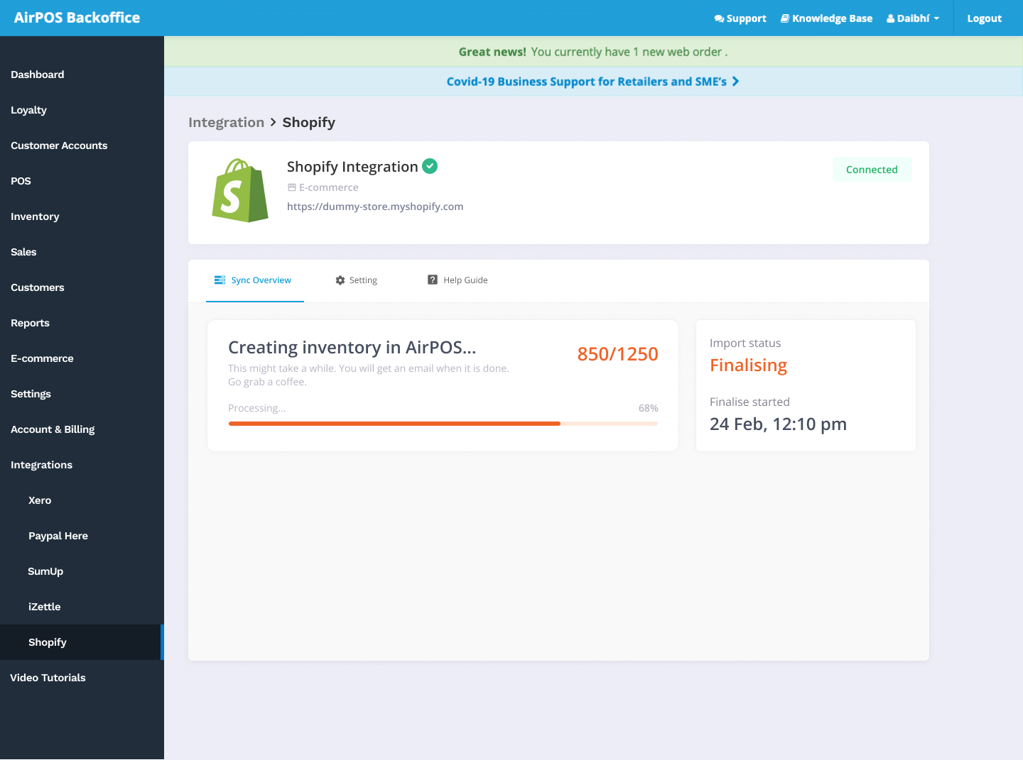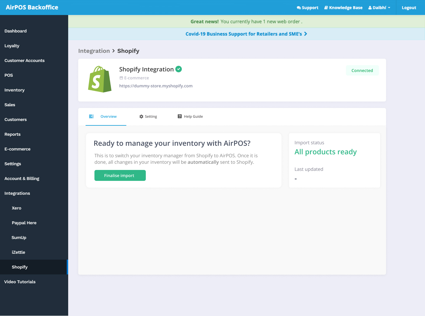 With the pandemic amplifying the need for retailers to have an e-commerce store AirPOS chose to develop a Shopify integration.